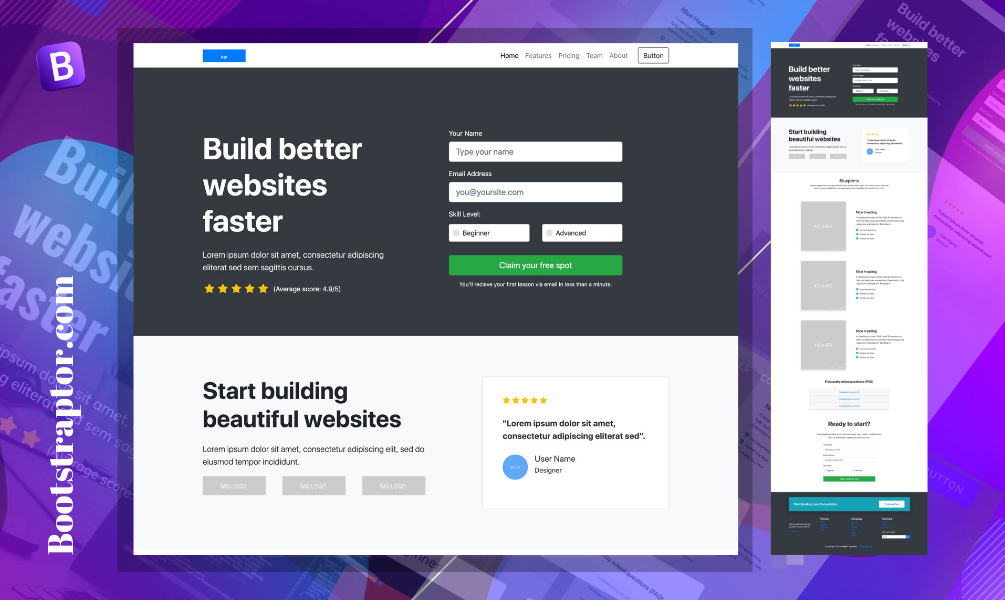 Bootstrap 4 HTML5 Website Template Landing Page With Header Form Ideal for Courses or Any Lead Generation